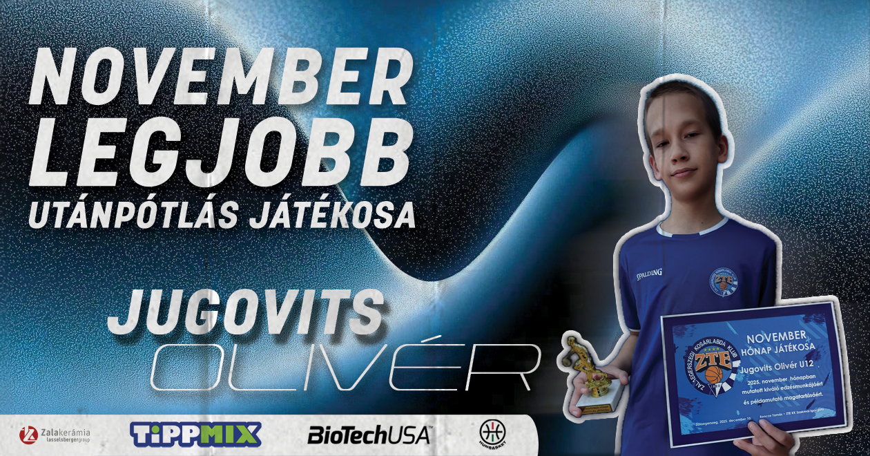 Novemberben ezt az elismerést a Zalakerámia ZTE KK tehetsége, Jugovits Olivér érdemelte ki.